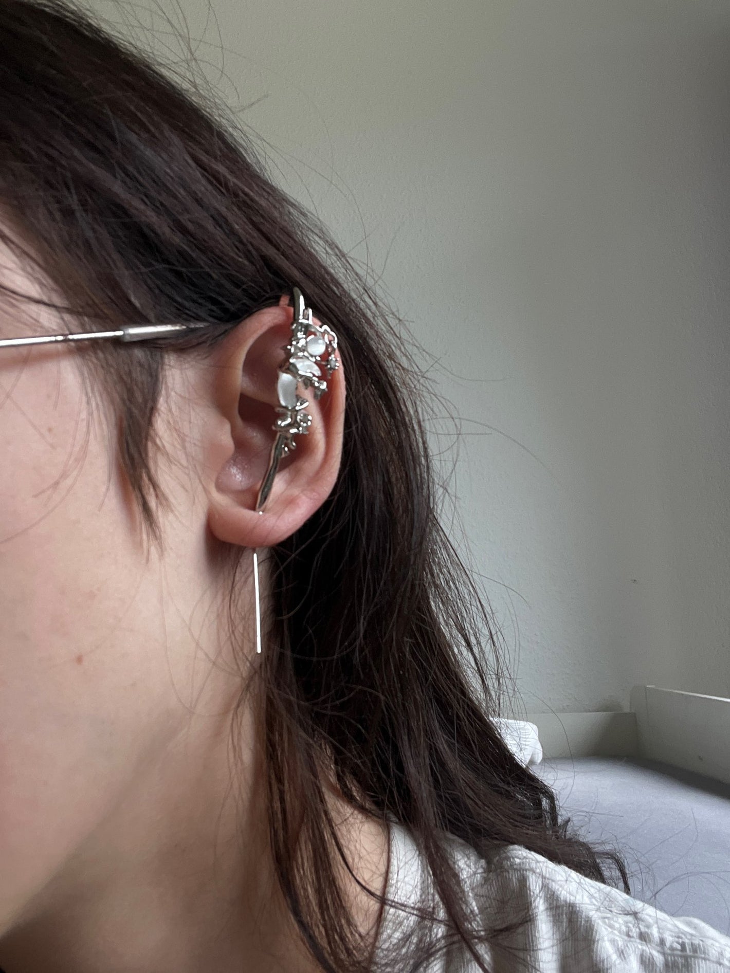 Estos earhooks pueden recordar pequeñas dagas, pero en realidad son un accesorio delicado y seguro. Diseñados para llevarlos cómodamente todo el día, agregan un toque de rebeldía sutil a tu estilo cotidiano.
